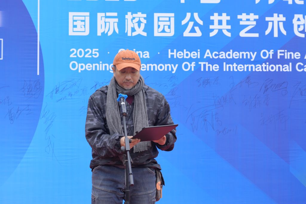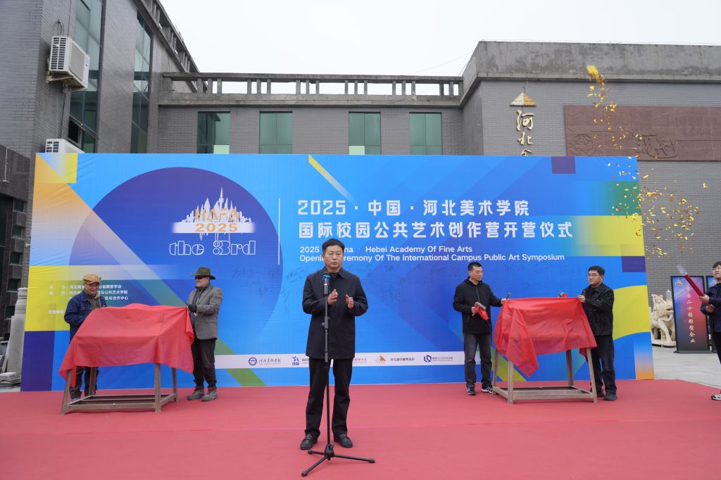 10月11日,“2025·第三届河北美术学院国际校园公共艺术创作营”开营仪式在河北鑫特雕塑集团举行。曲阳县委相关县级领导和部门负责人出席;我校理事长张丽、校长甄忠义、副校长张子言,国际交流与合作中心主任兰新成,雕塑与公共艺术学院院长甄亚雷等参加仪式。仪式由中国曲阳雕塑文化产业园党工委书记、管委会主任王谞昭主持。