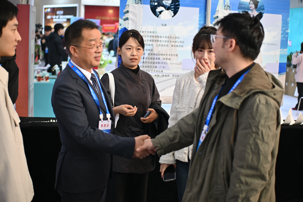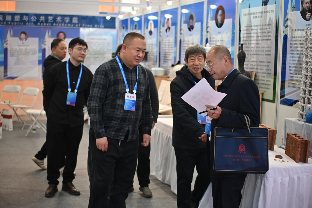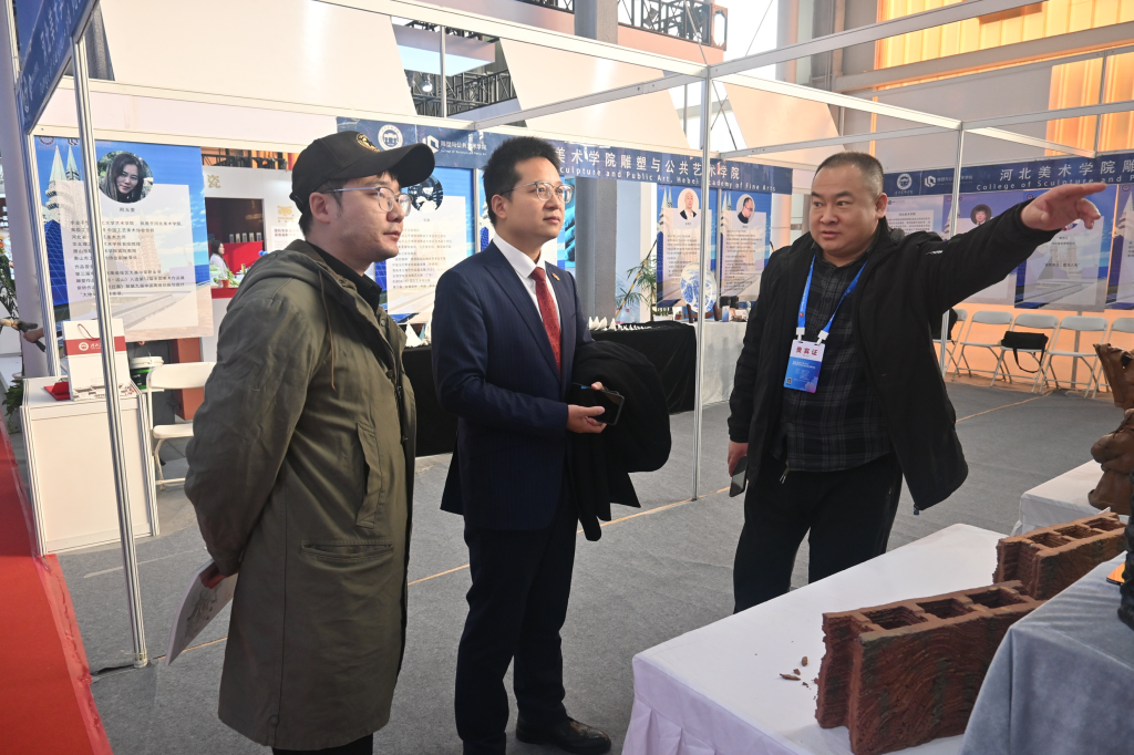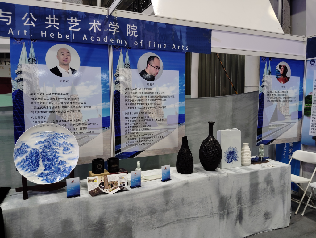 河北美术学院展区设在主展馆13号馆,展位面积54平方米,由工艺美术专业教师殷景太、吴昊带队,师生共6人参展。本届博览会同期举办“第十三届大地杯中国陶瓷创新与设计大赛”,我院共选送40余件(套)作品参展。展区以“传统技艺的当代表达与跨学科融合”为核心理念,重点展示了陶瓷材料在造型语言、工艺技术与艺术表达上的创新实践,受到来自全国优秀陶瓷企业代表及社会各界观众的关注与好评。
