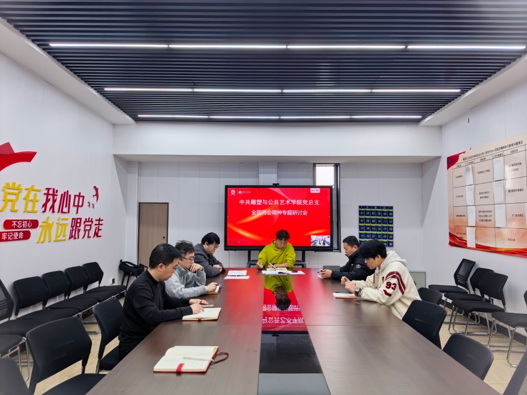 直播观看结束后,雕塑与公共艺术学院党总支书记甄亚雷主持召开两会精神专题学习研讨会。会上,甄亚雷书记强调学院全体党员提高政治站位,立足雕塑与公共艺术专业特色,将两会精神融入人才培养、社会服务等各环节;强化担当作为,以高质量党建引领学科与学院发展,凝心聚力推动工作提质增效,为建设文化强国、铸就社会主义文化新辉煌贡献专业力量。