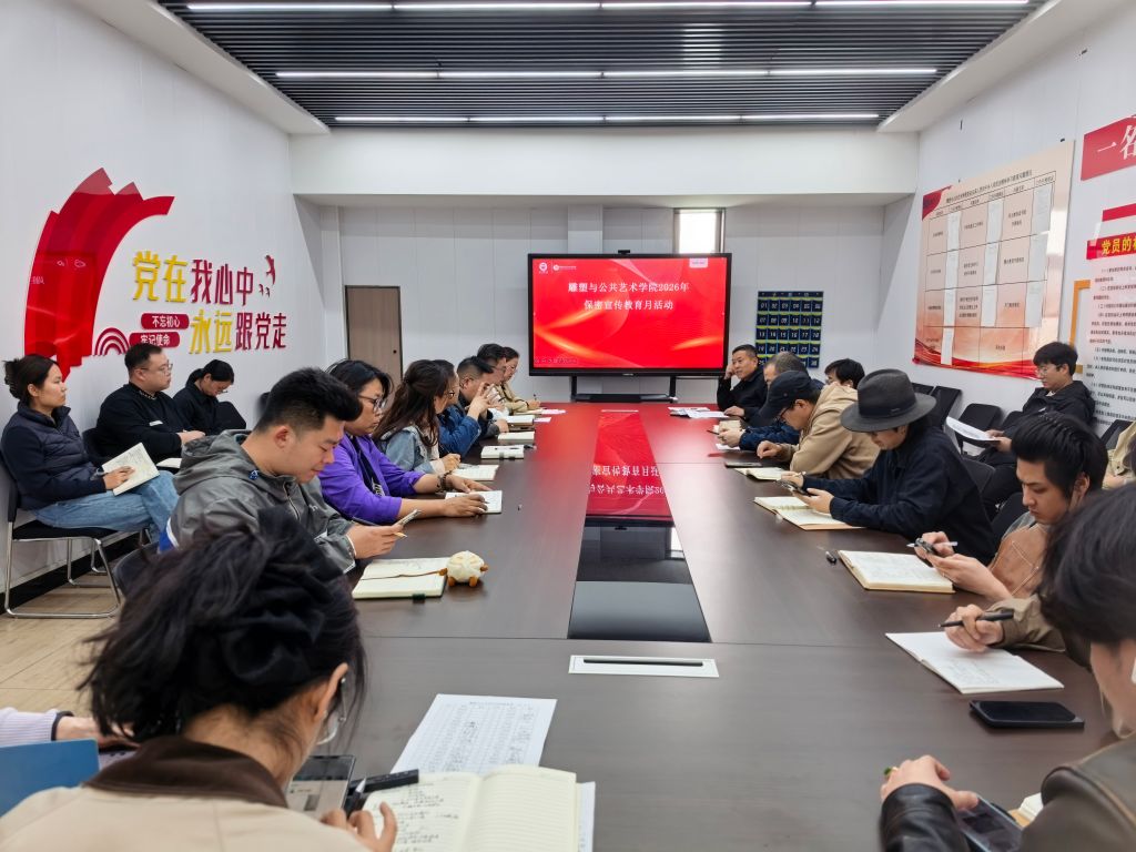 4月13日,雕塑与公共艺术学院以“共筑保密防线,公民人人有责”为主题,组织开展2026年保密宣传教育学习活动。教学副院长梁伟主持,学院领导班子成员、各教研室主任及全体辅导员参加。